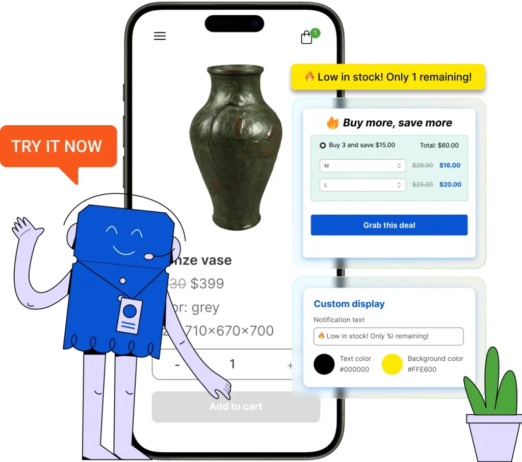 Expand your sales potential by offering a diverse range of discount options and enticing bundle deals. Our tools allow you to customize and deploy multiple discount types – such as volume pricing, BOGO, and tiered discounts – that motivate customers to purchase more, enhancing their shopping experience