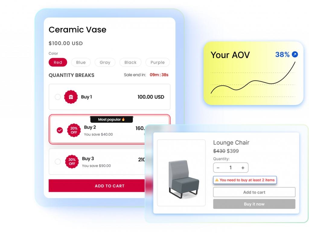 | Lets you create flexible discount campaigns – quantity breaks, bundles, add-ons, and stacked savings – to drive bigger carts and faster purchase decisions. |