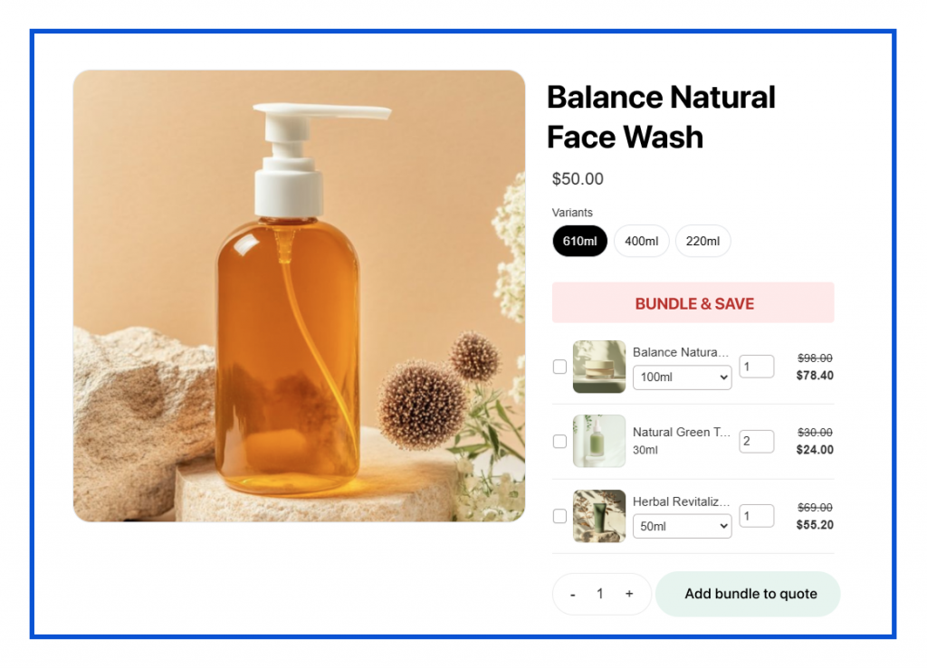 This integration brings together the conversion power of bundle promotions with the personal touch of custom quoting – perfect for boosting Average Order Value (AOV) while closing deals with more complex or hesitant buyers.
