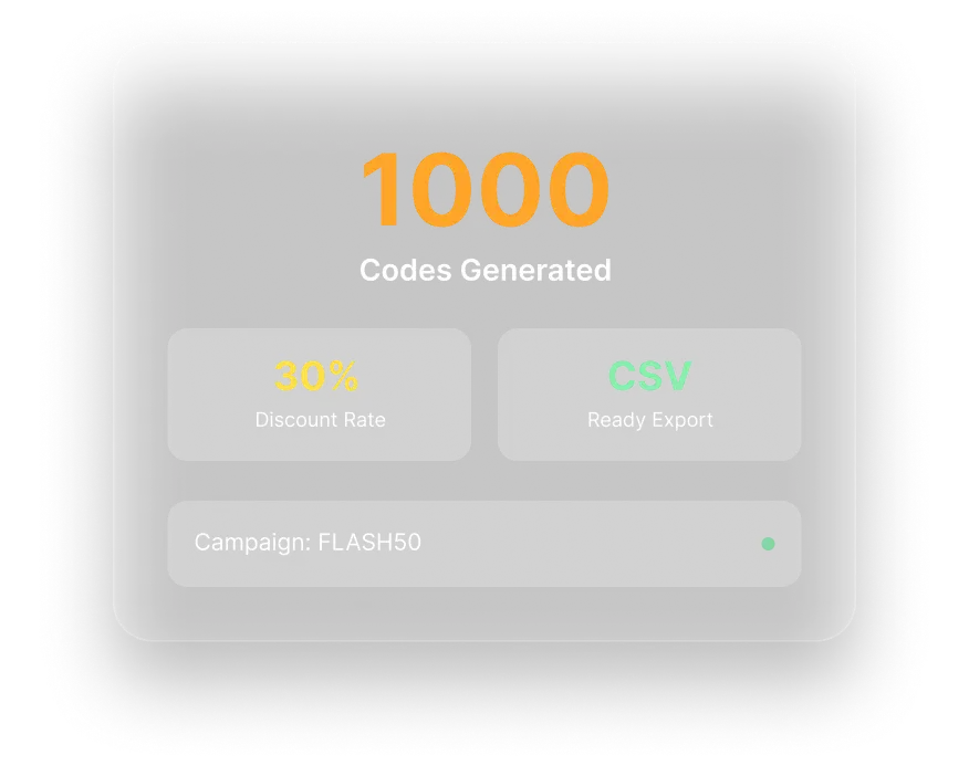 Generate hundreds of unique discount codes instantly for your campaigns.